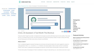 CMD J is a Chrome extension that uses AI technology to help improve the user's writing, coding, copywriting, and search capabilities. It provides access to unlimited AI-powered writing assistance, code explanations and answers to hard questions, post drafts for social media or blog posts, and human answers to Google searches. It is available in four pricing plans, ranging from free to Ultimate, with varying features and request limits. Users can access ChatGPT's features with a simple Cmd/Alt + J keyboard shortcut.