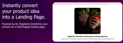 PageGenie is an AI-powered tool that helps users create professional landing pages for their products. It automatically generates a list of features, a FAQs section, a gallery of product images, and a subscription form for updates. It also provides a roadmap of possible features, such as Shopify integration, Figma integration, bulk generation, and more.