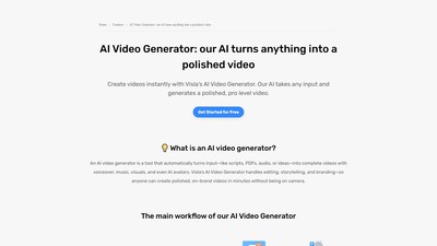 Visla is a video creation and editing tool that helps users create engaging videos quickly and easily. It features AI video generation capabilities that can generate compelling stories and visually striking videos that resonate with users' audiences. It also includes tools for editing, recording, collaboration, and customizing the tone and style of videos. Additionally, Visla provides auto-transcription, embedded videos, and auto-recommended footage for creating professional demos.