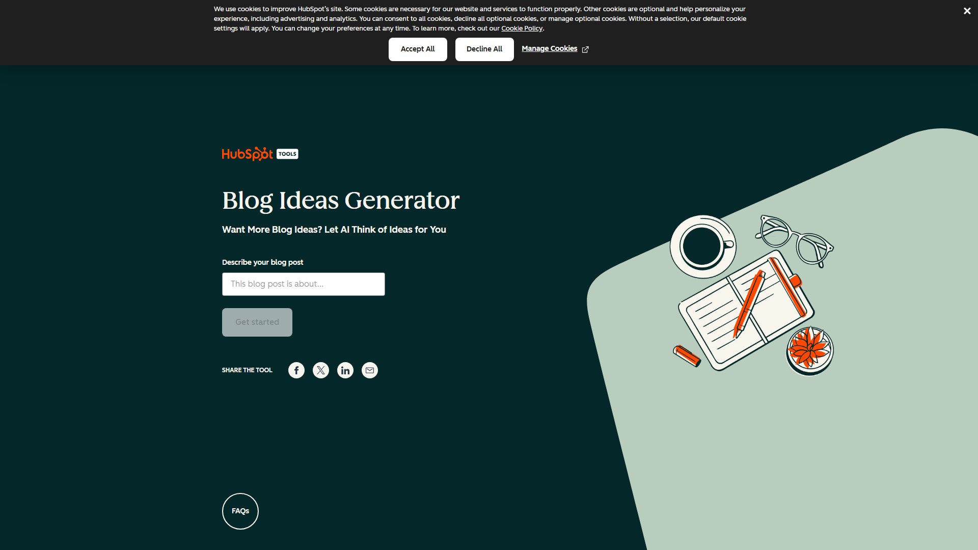Main features: generates blog topics, titles, outlines, and full content based on user input; integrates with HubSpot CMS for direct publishing. Target users: content marketing teams, small business owners, bloggers, and content creators. Advantages: completely free, uses AI to significantly minimize content creation time, user-friendly with no technical experience required; generates professional-quality content suggestions.