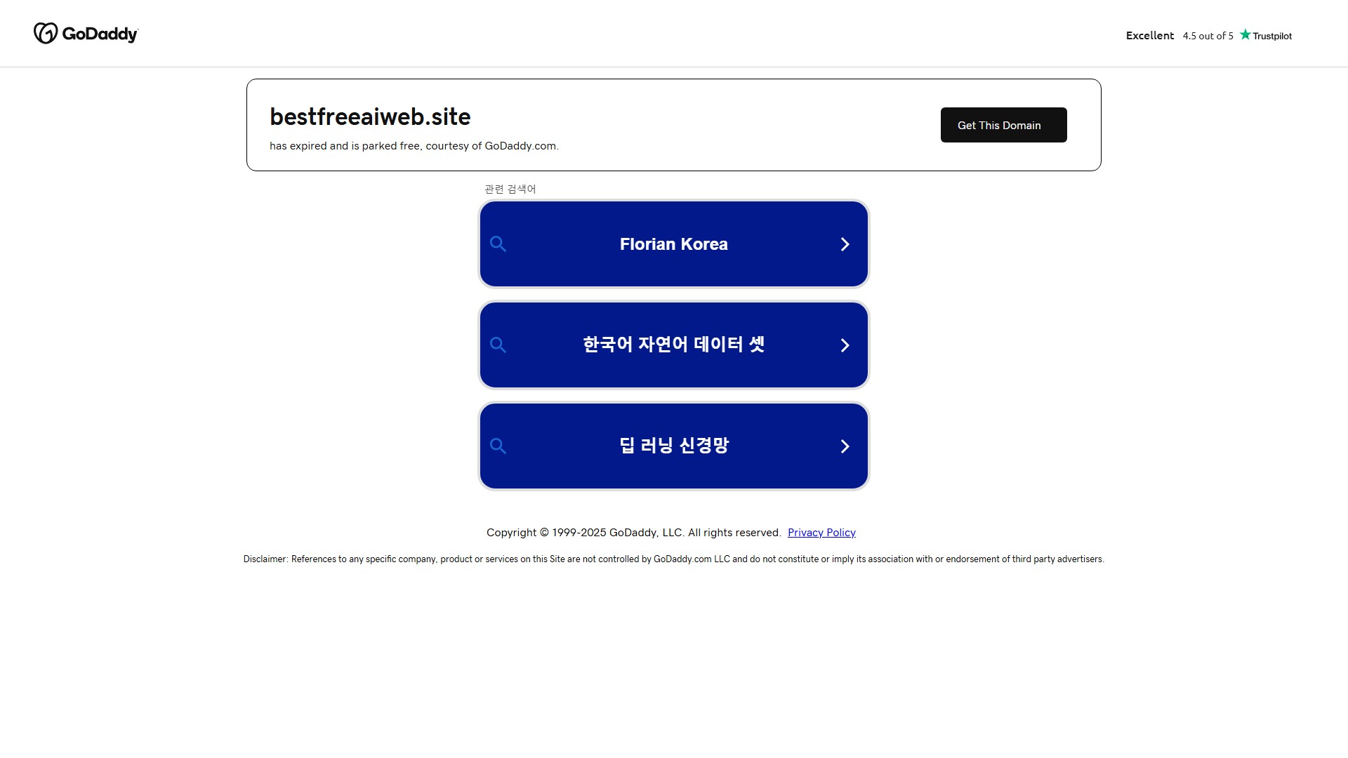 : This is a domain parking page and does not contain any information about an AI tool or service. Its primary purpose is to show that the domain is available for purchase and provides a 'Get This Domain' link.