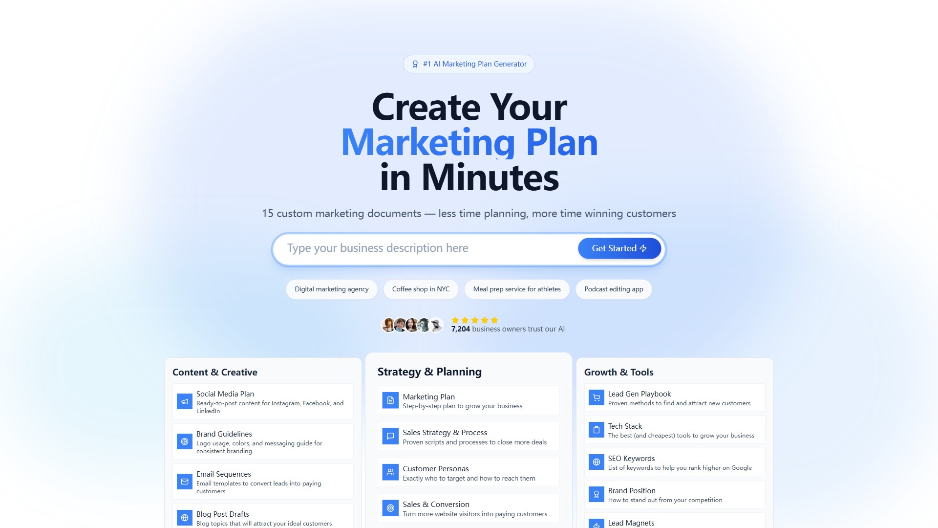 Each guide includes: AI-Generated Strategy + 15 Essential Documents, Unlimited Edits & Customization, Detailed Audience & Competitor Insights, Templates & ChatGPT Prompts, Export to PDF or DOCX, Priority Support & Money-Back Guarantee