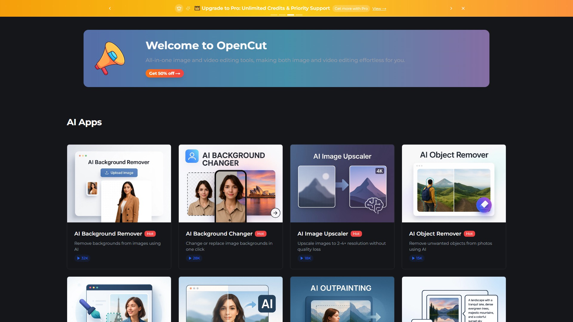 OpenCut provides a comprehensive set of AI image processing tools: