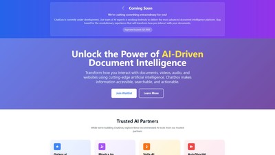 Main features: AI-powered record management automation, including automatic document categorization and tagging, intelligent search and retrieval, blockchain security and compliance, secure data rooms, digital signing and workflow automation, multi-channel record addition, activity monitoring and analytics, business intelligence, natural language interface, and automatic tagging and classification. Target users: industries such as finance, healthcare, legal, government, insurance, manufacturing, SMBs, education, real estate, pharmaceutical, energy, non-profit, tech & IT, construction, transportation; and professionals in departments like finance, legal, HR, operations, IT, etc. Core advantages: transforms chaotic data into actionable strategic intelligence, automates document processing, enterprise-grade security and compliance (SOC 2, HIPAA, ISO 27001, GDPR), and access anywhere. Usage flow: connect storage sources, AI processes automatically, enjoy record management. Pricing: 3-day free trial, then paid plans (specific pricing on the pricing page).