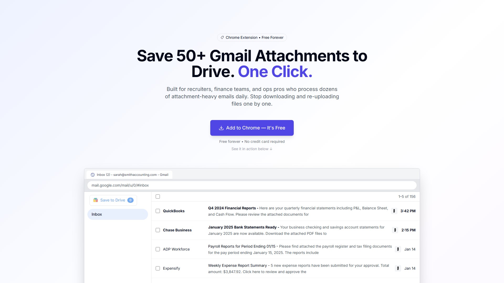 : The extension never reads your emails; it only accesses attachment metadata.