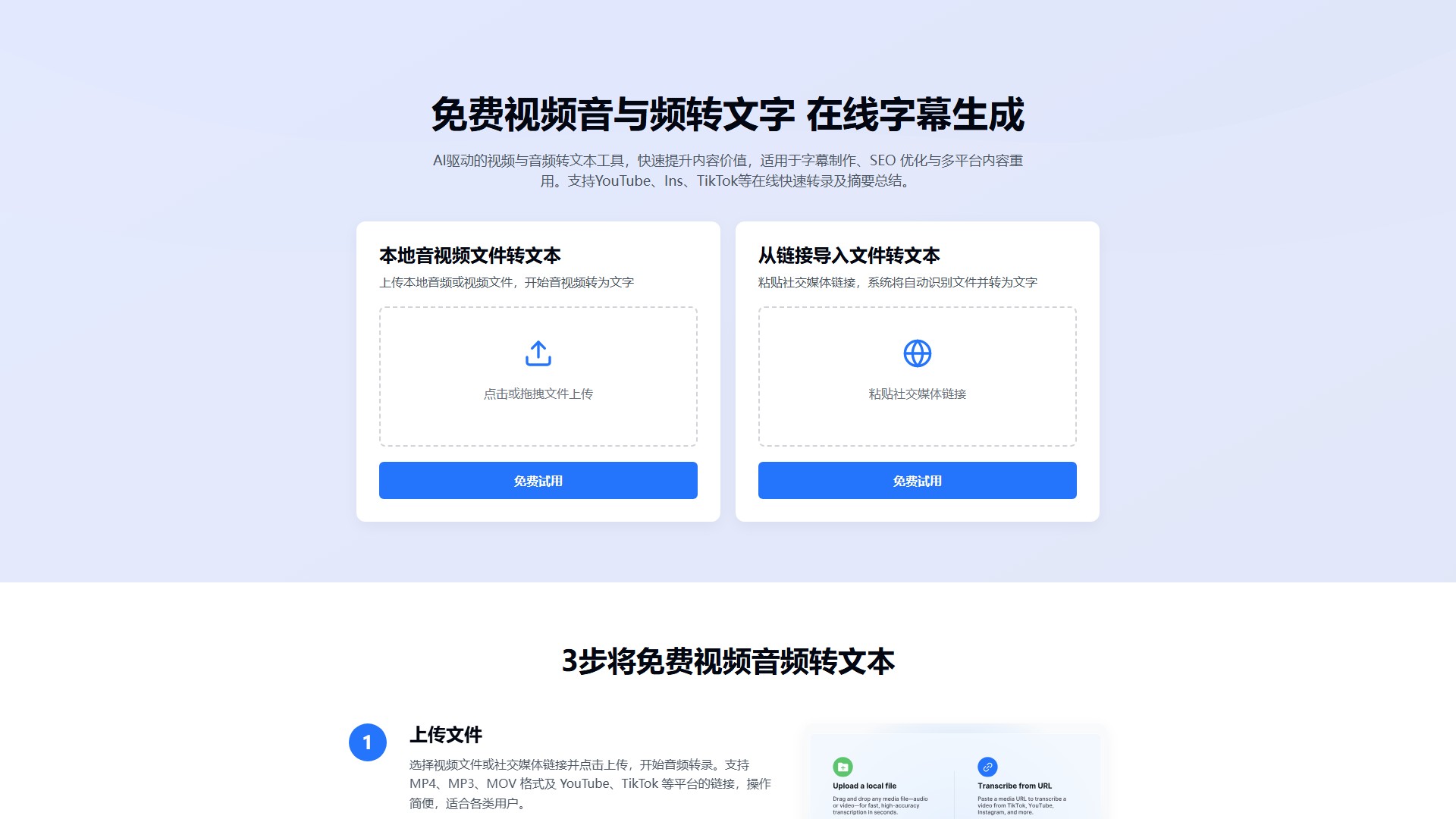 Provides transcription and download services for 50+ platforms including: TikTok, YouTube, Facebook, Instagram, Twitter/X, Xiaohongshu, Snapchat, Kuaishou, Vimeo, Likee, etc.