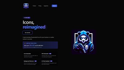 Main Functions & Features: IconGen.io is an AI icon generator designed to help users quickly create beautiful icons. Its core features include: 1. User-Friendly Interface: Offers an intuitive, icon-driven interface that simplifies the process of creating, selecting, and downloading icons, perfect for both beginners and seasoned designers. 2. Fast, Efficient Icon Generation: Leverages a modern tech stack and AWS infrastructure to ensure rapid icon generation and download without compromising quality. 3. 12 Different Styling: Provides 12 engineered prompts and style options, enabling users to create unique icons that perfectly fit their project's aesthetic. 4. Transparent Pricing: Operates on a credit-based, pay-as-you-go model with no hidden fees. New users receive 5 free credits upon registration. Target Users & Use Cases: The tool is for professionals, designers, and businesses who need to create icons for business projects, client presentations, applications, or any design work. User testimonials indicate its use in elevating the professionalism of presentations and generating small logos for apps. How to Use: After signing up, users get free credits to generate icons by describing their needs and selecting a style. Generated icons are saved in the user's collection page for download. Icons are in .JPG format by default but can be renamed to .PNG or other extensions. Pricing & Plans: Offers a free trial (5 credits). Paid plans are pay-as-you-go: $5 for 40 credits, $10 for 100 credits, and $20 for 250 credits. All credits have no expiration date, and users have unlimited downloads of their generated icons. Frequently Asked Questions (FAQ): Technically, the speed is due to a modern tech stack and AWS infrastructure. Text on icons may not look good because generating text with AI is a complex task. Regarding billing, competitiveness is maintained through free credits rather than discounts; currently, a maximum of 100 credits can be purchased at a time, with plans to support larger purchases in the future.