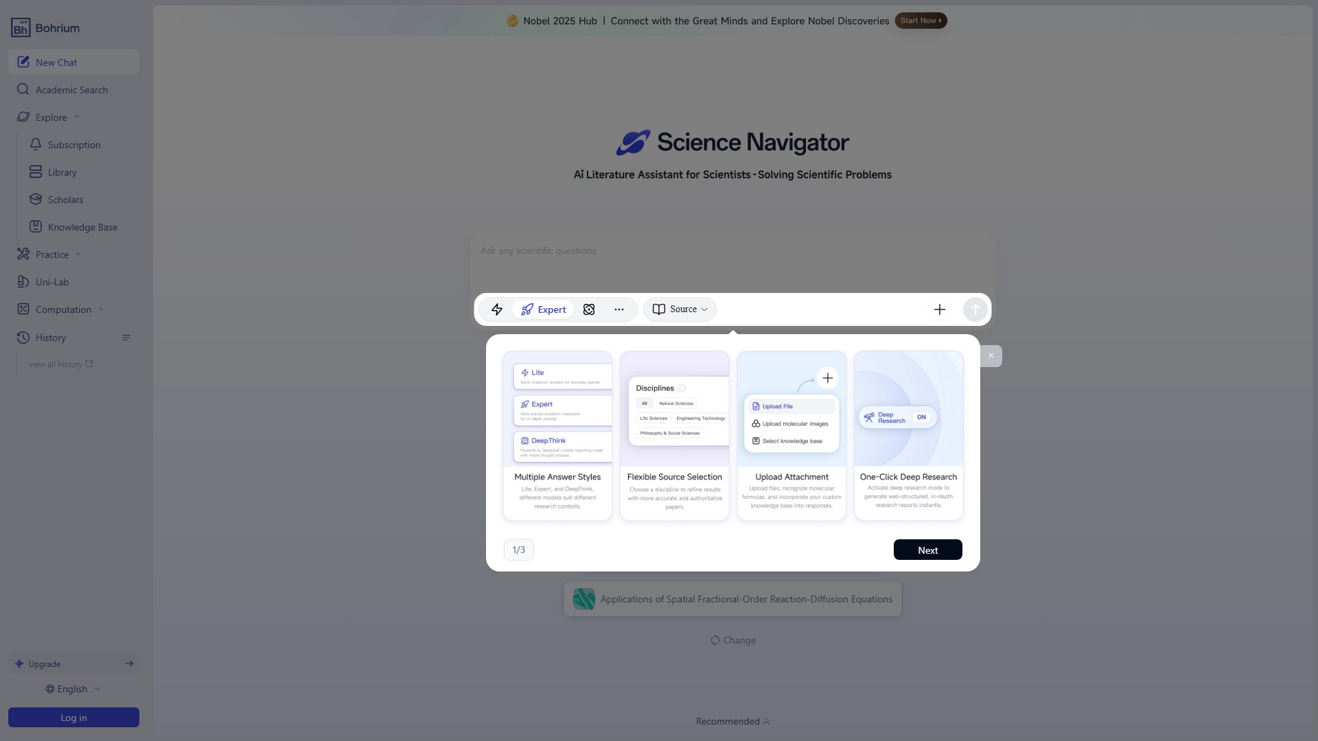 • AI Q&A: Ask any scientific questions supported by experts and sources