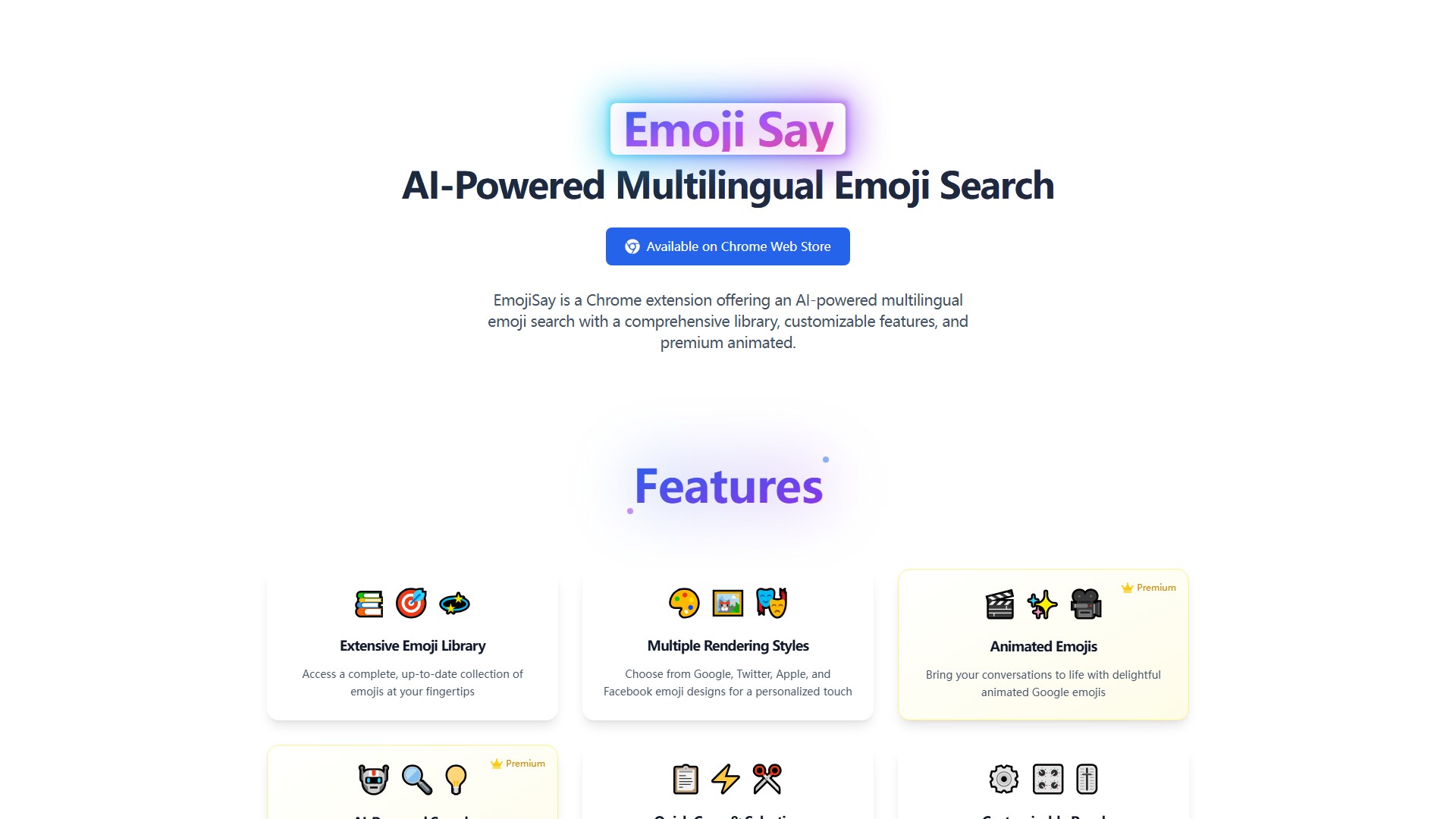 A: Emoji Say is an intelligent emoji input assistant Chrome extension that enables quick emoji input on any website through AI-powered smart recommendations and precise search functionality.