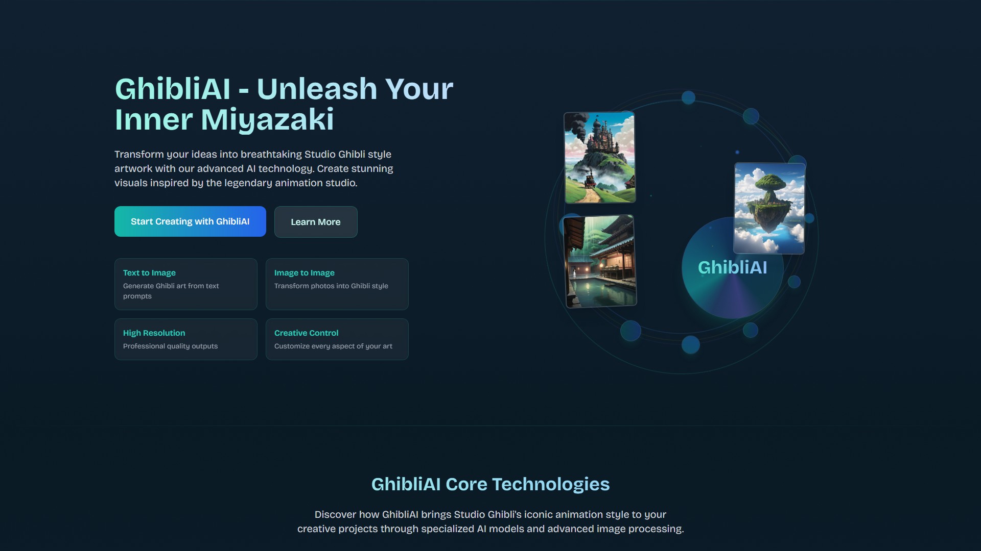Offers free starter experience with complimentary credits to create first Studio Ghibli style artwork. Paid plans available for extended features and creation credits.