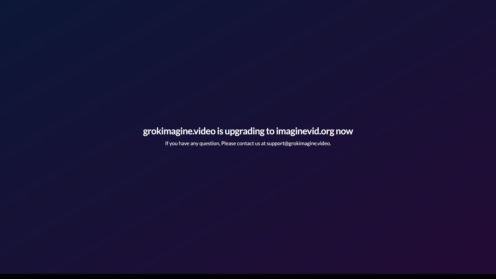 The service (grokimagine.video) is upgrading and will migrate to a new domain, imaginevid.org.
