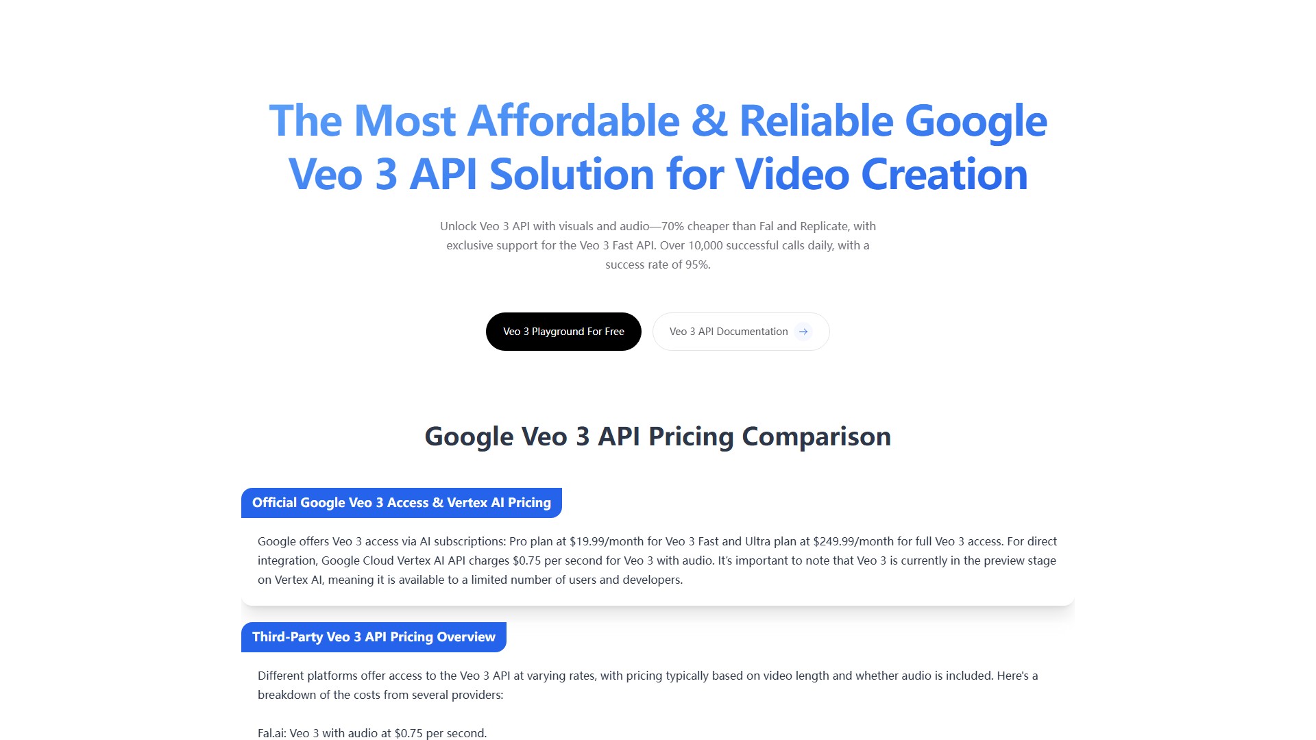 Price Comparison: Significantly cheaper than competitors like Replicate and Fal.ai, which charge $6.00 for an 8-second video.