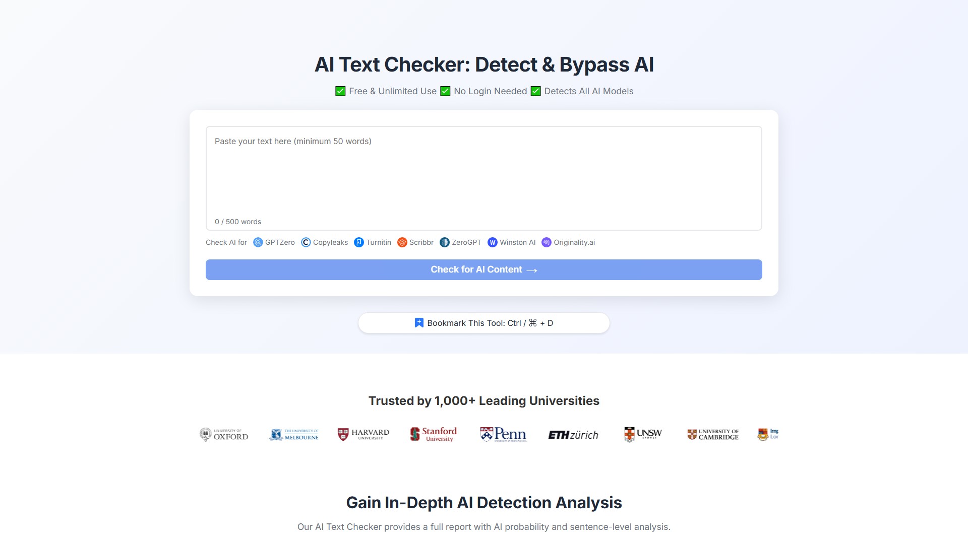 • Free & Unlimited Use: The core detection function is completely free with no word limits and no account registration required.