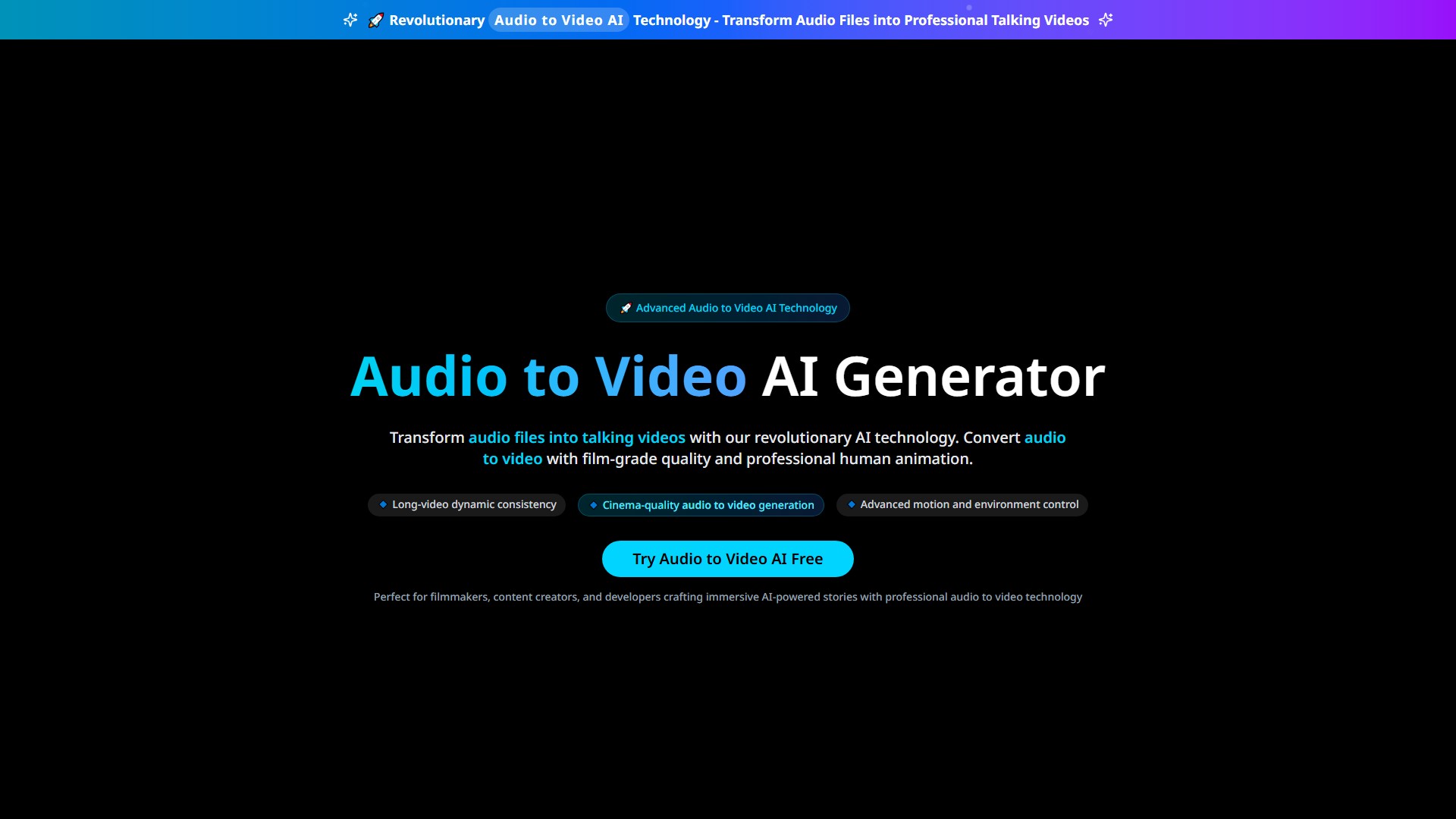 Most audio-to-video conversions are completed within 1-2 minutes, depending on audio length and complexity.