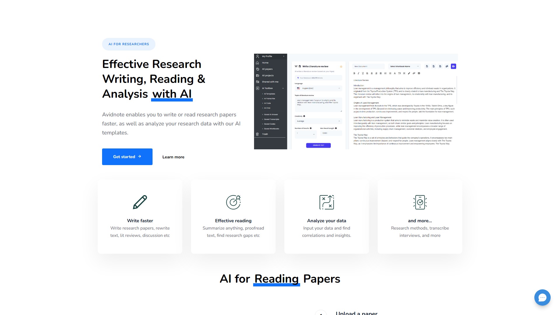 AI for Reading: Upload a paper or document. Use AI to ask questions, summarize text, get explanations, proofread, and much more. Notes and the paper are displayed side-by-side, no need to switch windows.