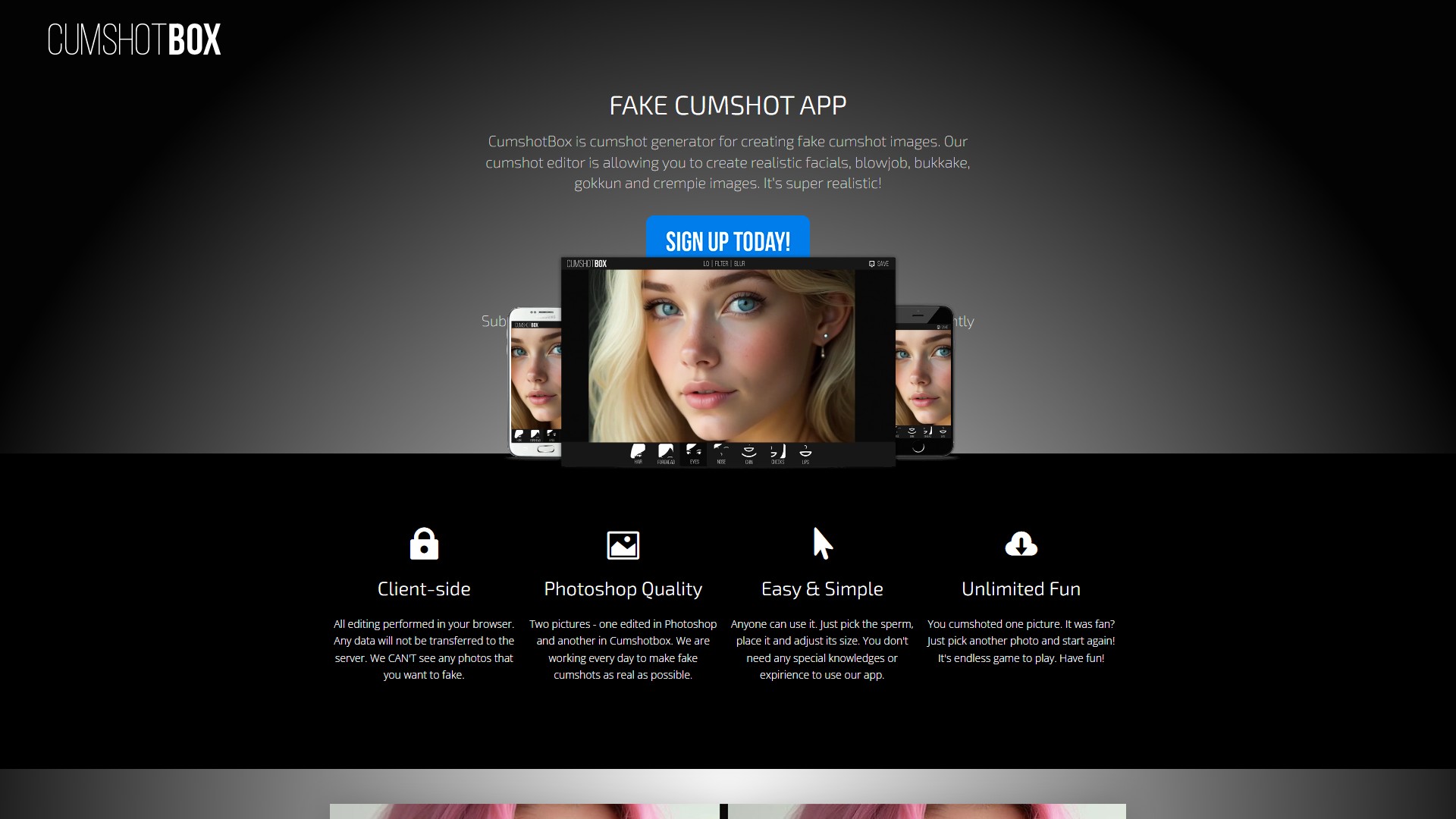 Creating fake cumshot images, including realistic facials, blowjob, bukkake, gokkun, and creampie images.