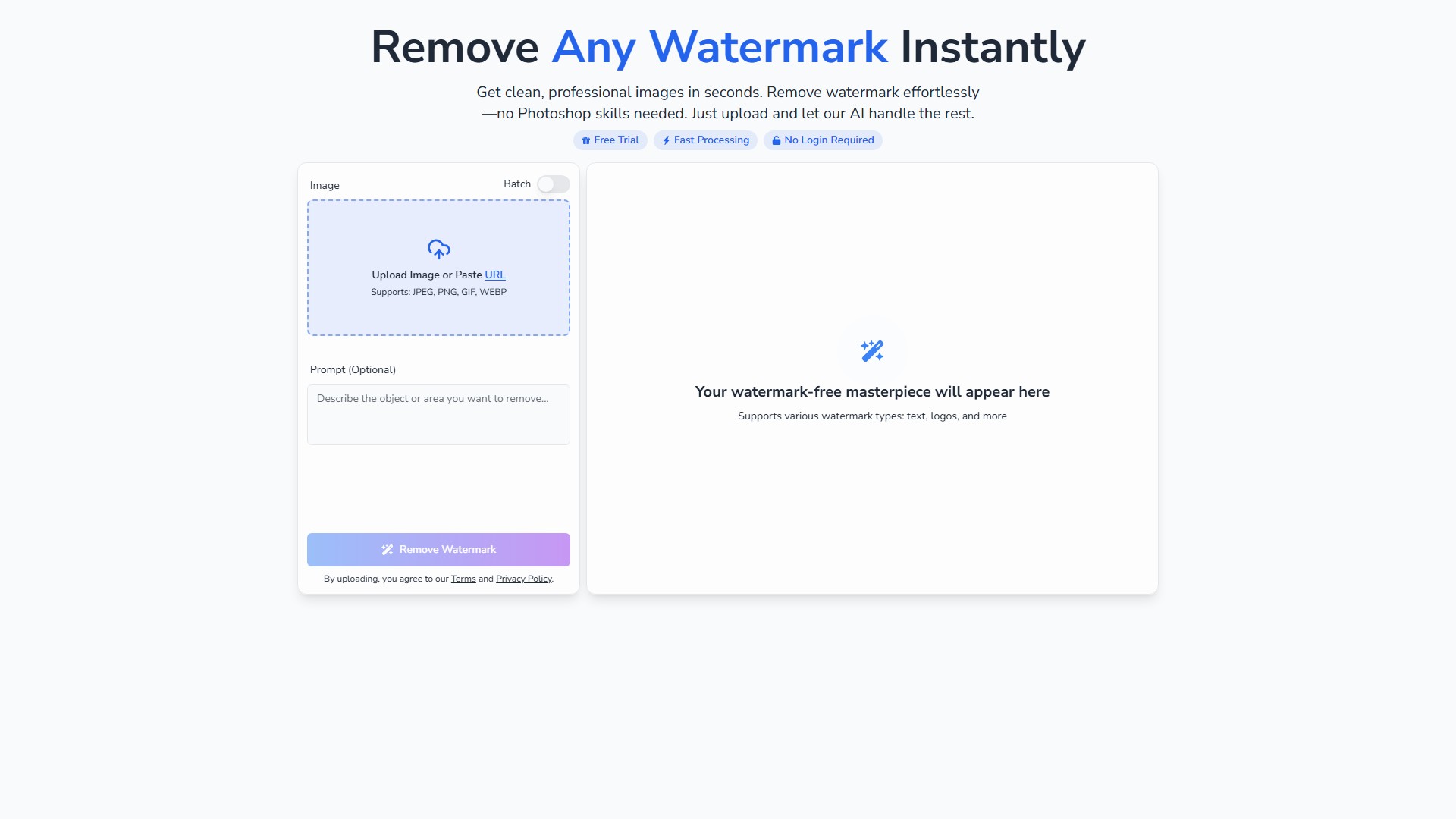 AI automatically detects and removes watermarks (text, logos, etc.).