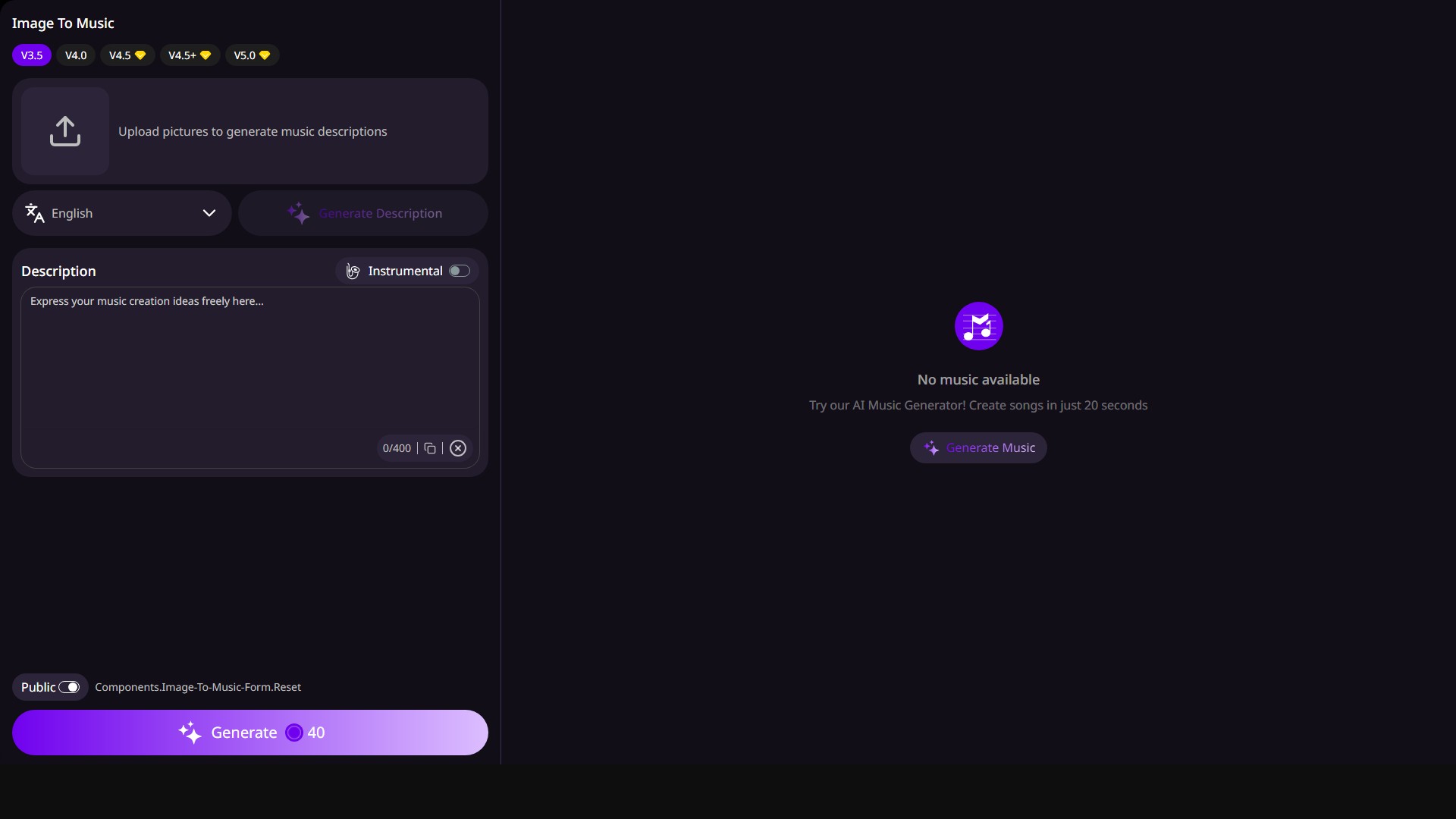 Image Upload to Music Generation: Support uploading images for AI to automatically analyze visual elements and generate corresponding music