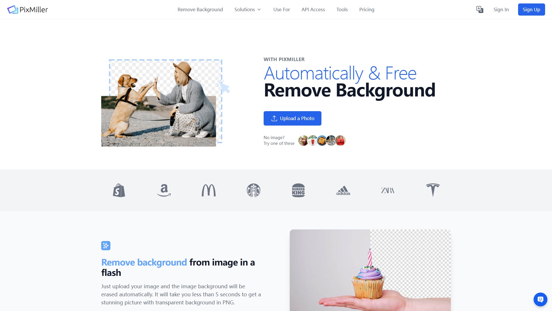 PixMiller offers a background remover API capable of processing over 100 images within 1 minute. The integration process is super easy to navigate, suitable for enterprise users requiring batch processing.