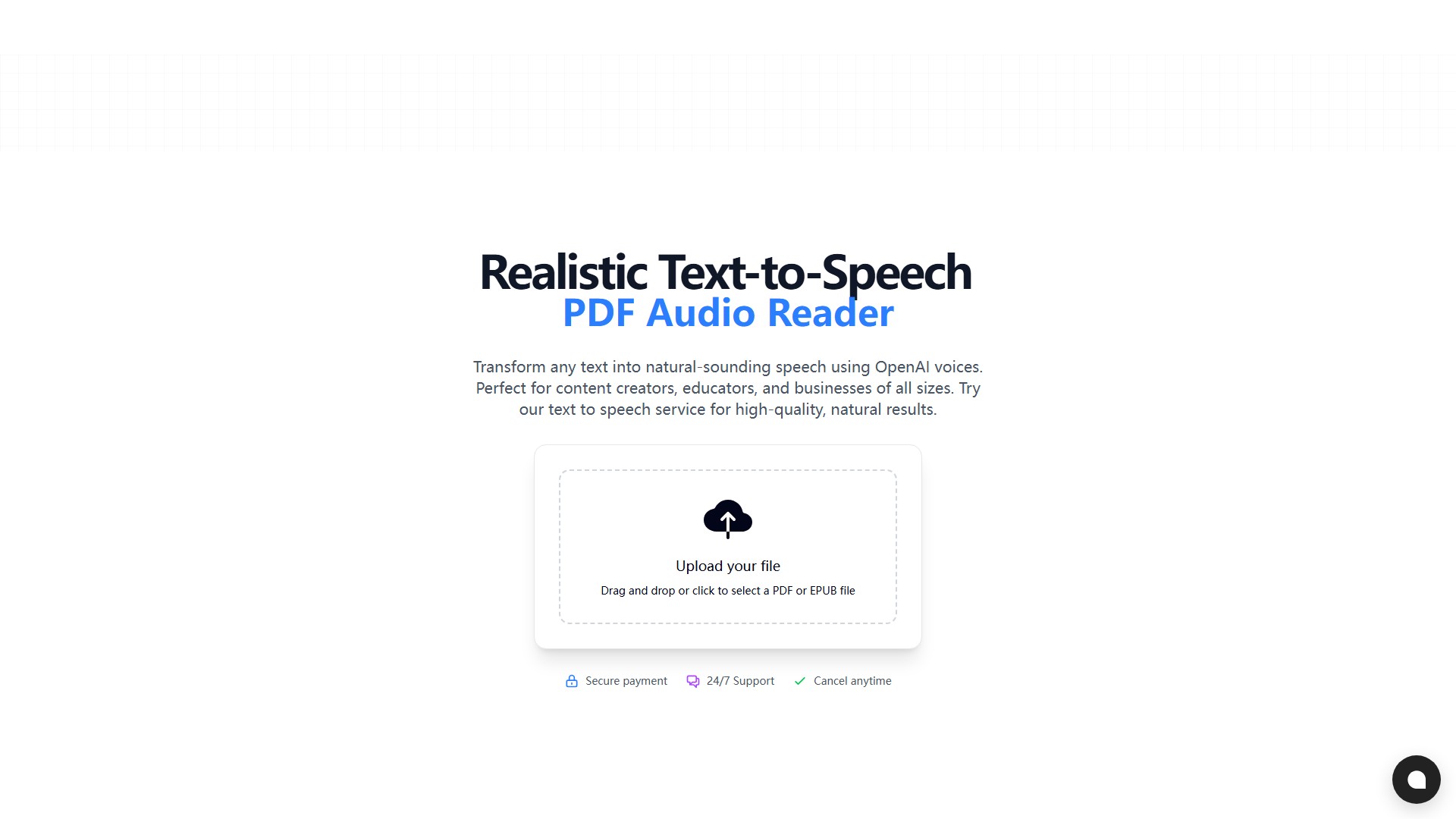 • PDF/EPUB Audio Reader: Supports uploading PDF or EPUB files and converts them into speech for listening.