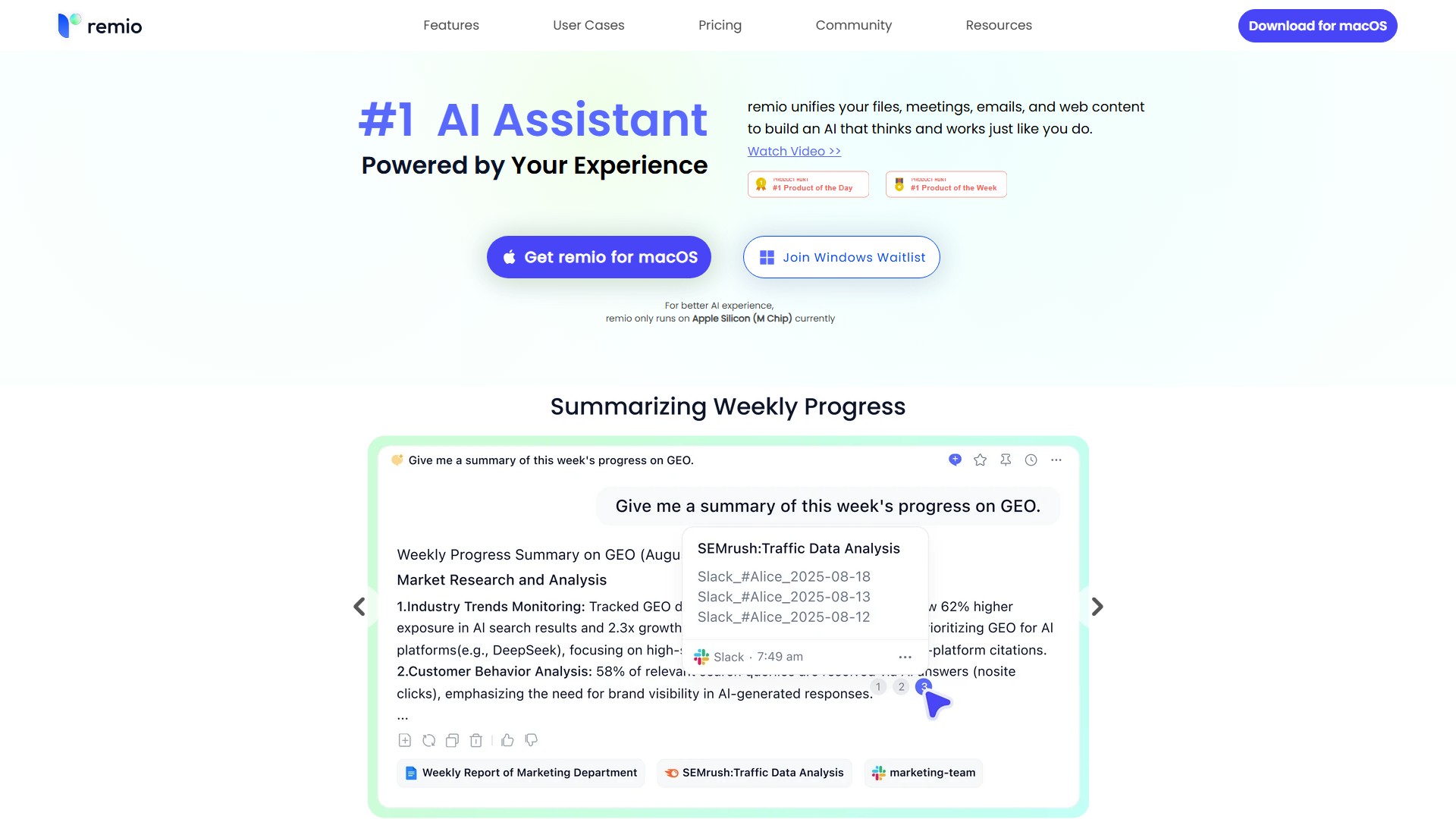 AI Partner Integration: remio integrates directly into your workflow, bringing its power to your current application with a simple click, understanding context to provide instant, relevant assistance.