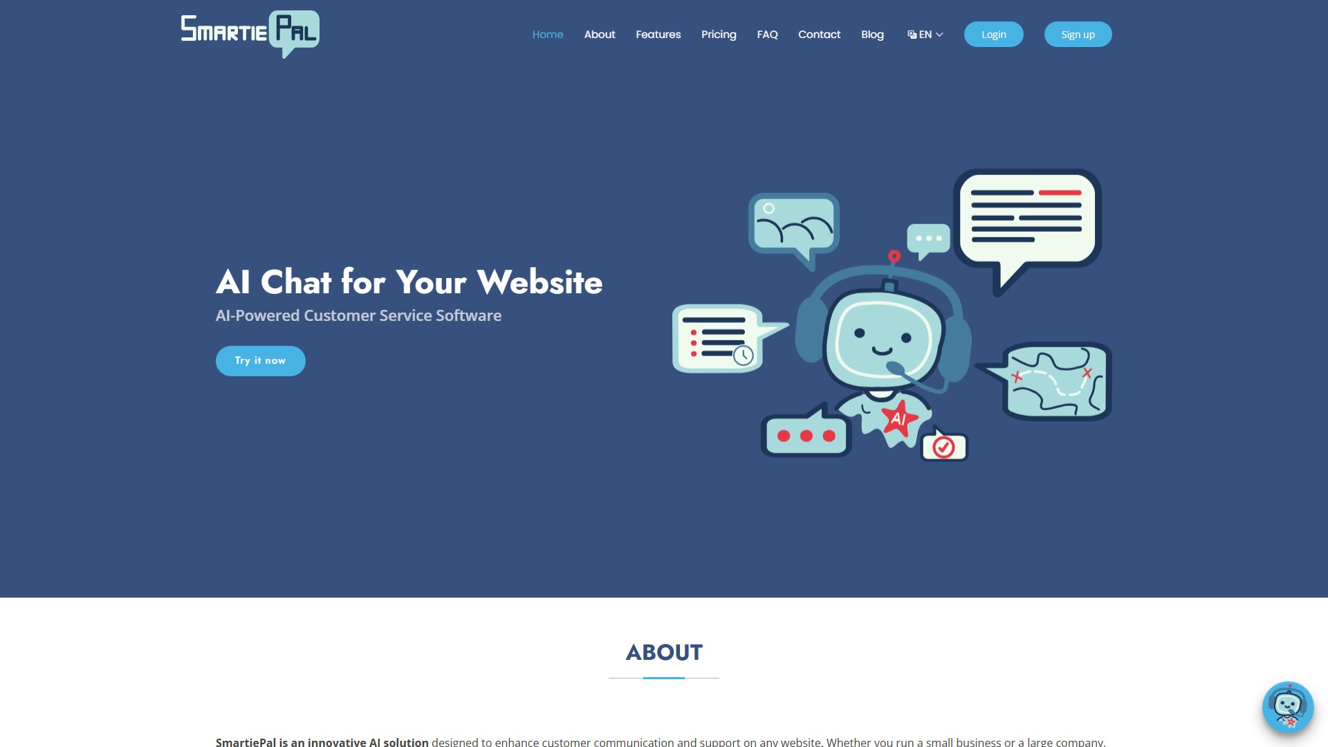 • Fast and simple integration: Add just one line of HTML code to integrate SmartiePal into your website