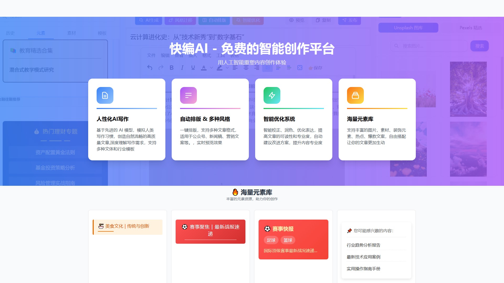 工具的核心AI写作、自动排版、优化及素材库功能均为免费使用。