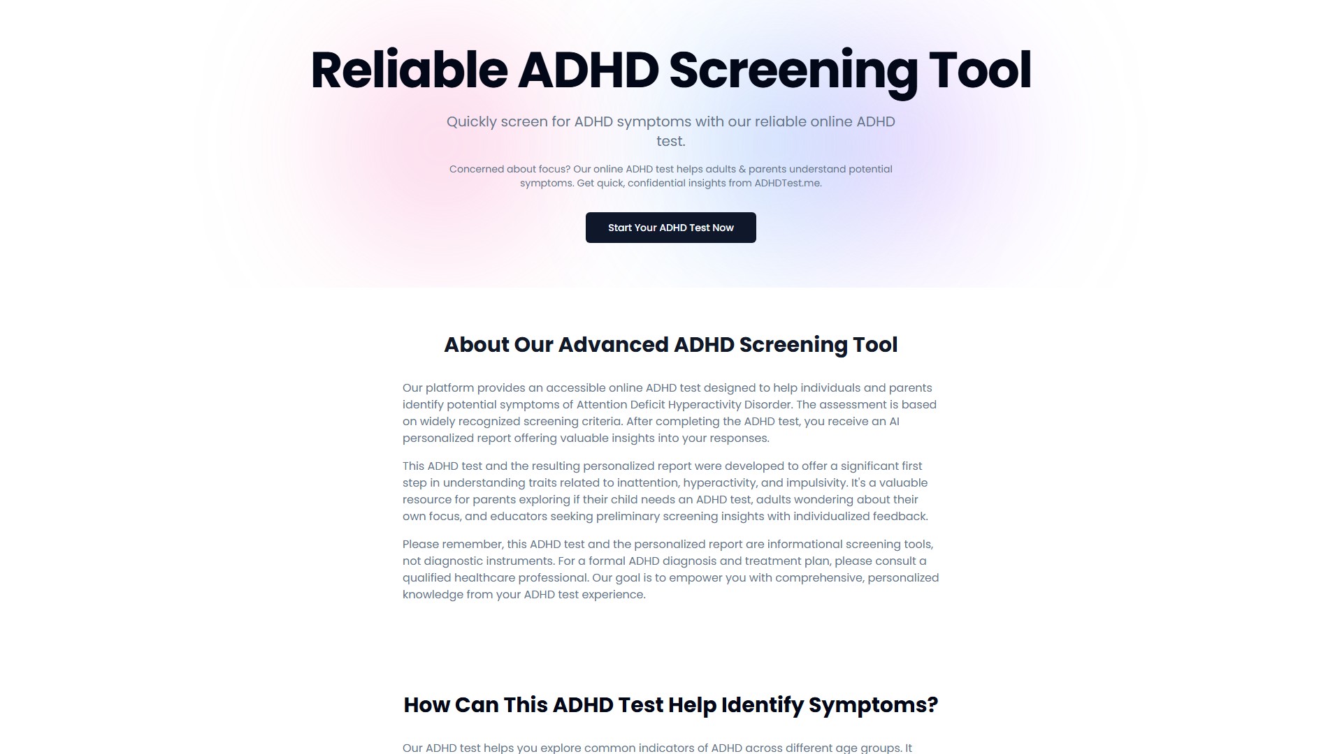 : 平台界面设计易于使用,确保所有寻求初步ADHD评估的用户都能获得流畅体验。