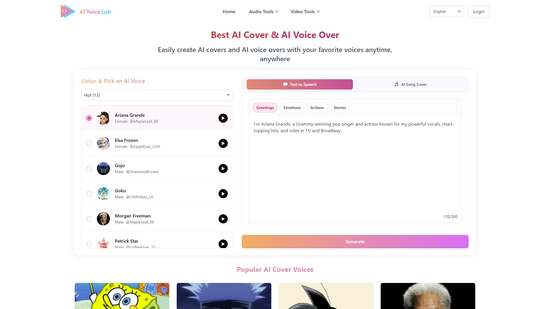 : 点击生成,AI 将处理并创建新的翻唱或语音内容。