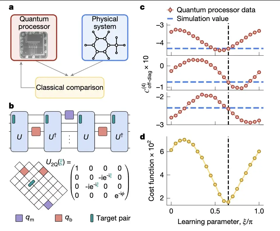 研究人员设计了一个单参数学习实验:先模拟一个 “未知规则的量子系统”,再用 OTOC⁽²⁾测这个系统的信号,然后通过调整参数、让量子模拟的信号和实测信号匹配,最终精准找到了那个未知的相位(误差很小)。