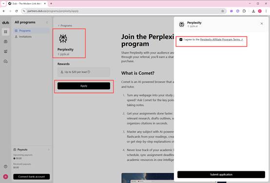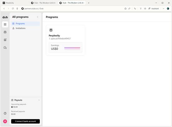 5. Register on the Dub platform using your Perplexity email to view the number of invites and reward balance.